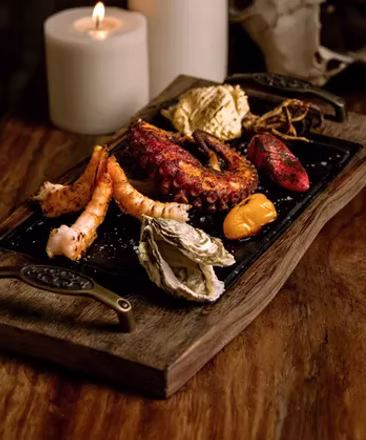 The culinary focus at Chambao is on premium meats — including Kobe and Wagyu cuts — and a range of fresh seafood grilled and prepared to highlight natural flavors. The menu features an array of signature dishes, from dry-aged steaks to carpaccio-style seafood and lobster, all paired with craft cocktails and a thoughtful beverage selection.