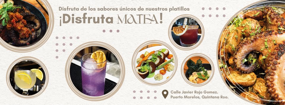 The menu at Matea Puerto Morelos features a diverse selection of dishes inspired by both international and Mexican flavors. Guests can enjoy fresh salads, seafood and meat entrées, tacos, pastas, grilled specialties, and lighter small plates. Each dish is prepared with attention to balance, texture, and flavor, offering options for those looking for a full meal as well as those who prefer a casual bite.