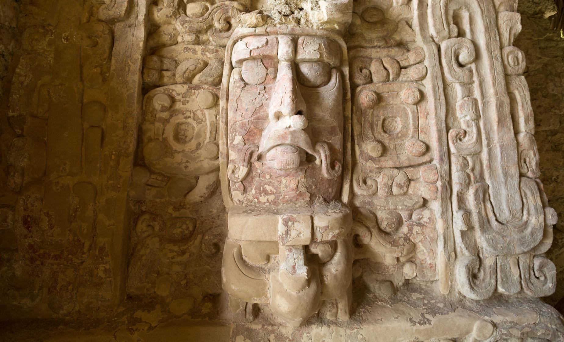 Kohunlich is one of the most striking and atmospheric Maya archaeological sites in southern Quintana Roo, best known for its remarkable large stucco masks that once adorned the temples of this ancient city. These finely detailed sculptures, believed to represent the Sun God Kinich Ahau, are among the best-preserved examples of Maya stucco art and give Kohunlich its unique identity.